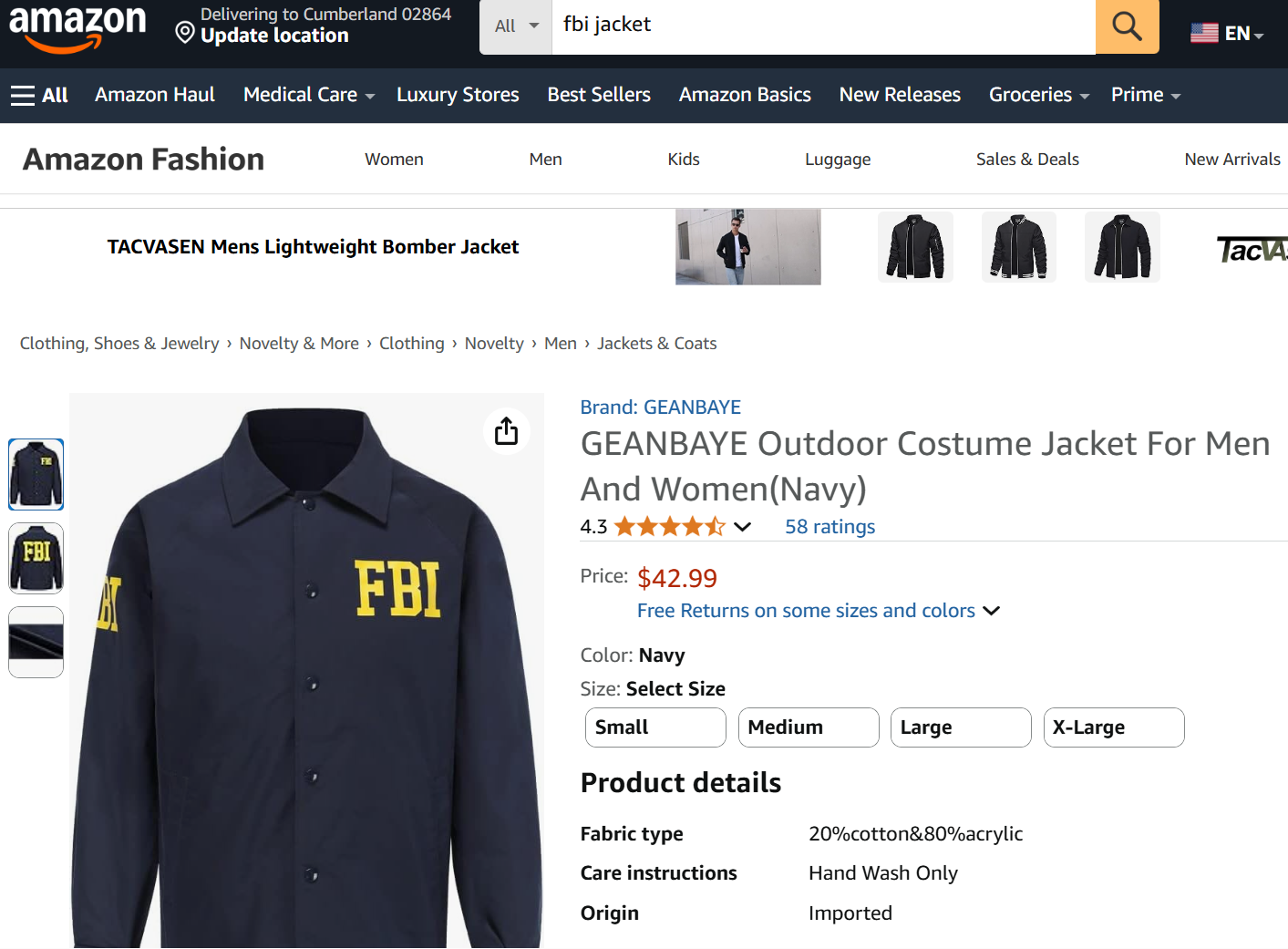 Patel was probably waiting for his Amazon Prime next-day delivery of his FBI jacket to arrive. Imagine his excitement when the box arrived and he got to open it.
